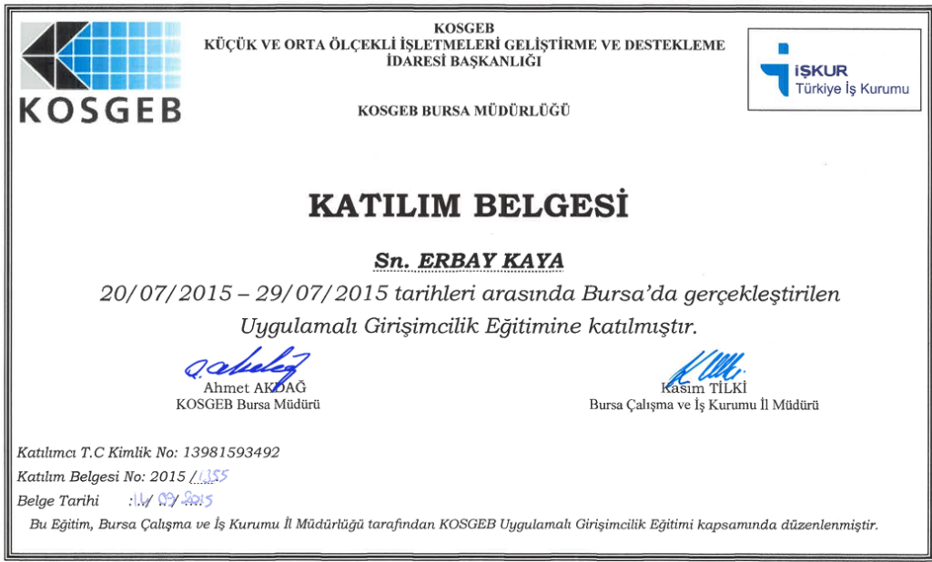 📜 KOSGEB İleri Girişimcilik Sertifikası